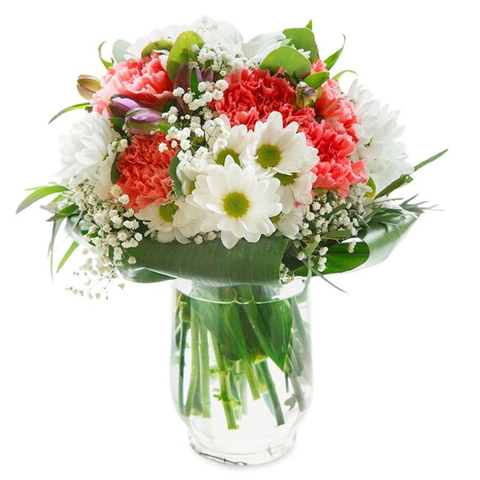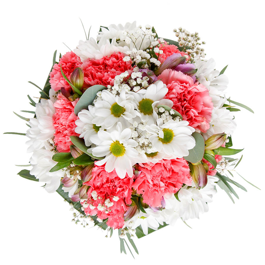 Delight in the beauty of our charming bouquet, thoughtfully designed with a harmonious mix of white and pink flowers to create a stunning visual appeal.